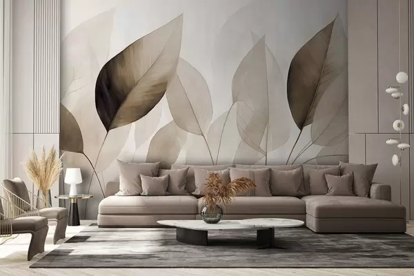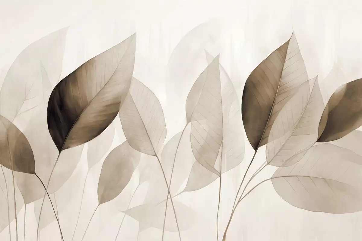 Fototapety Texturovaná malba imitující listy v odstínech hnědé a béžové s jemnými žilkami a stonky Č. w09400v1