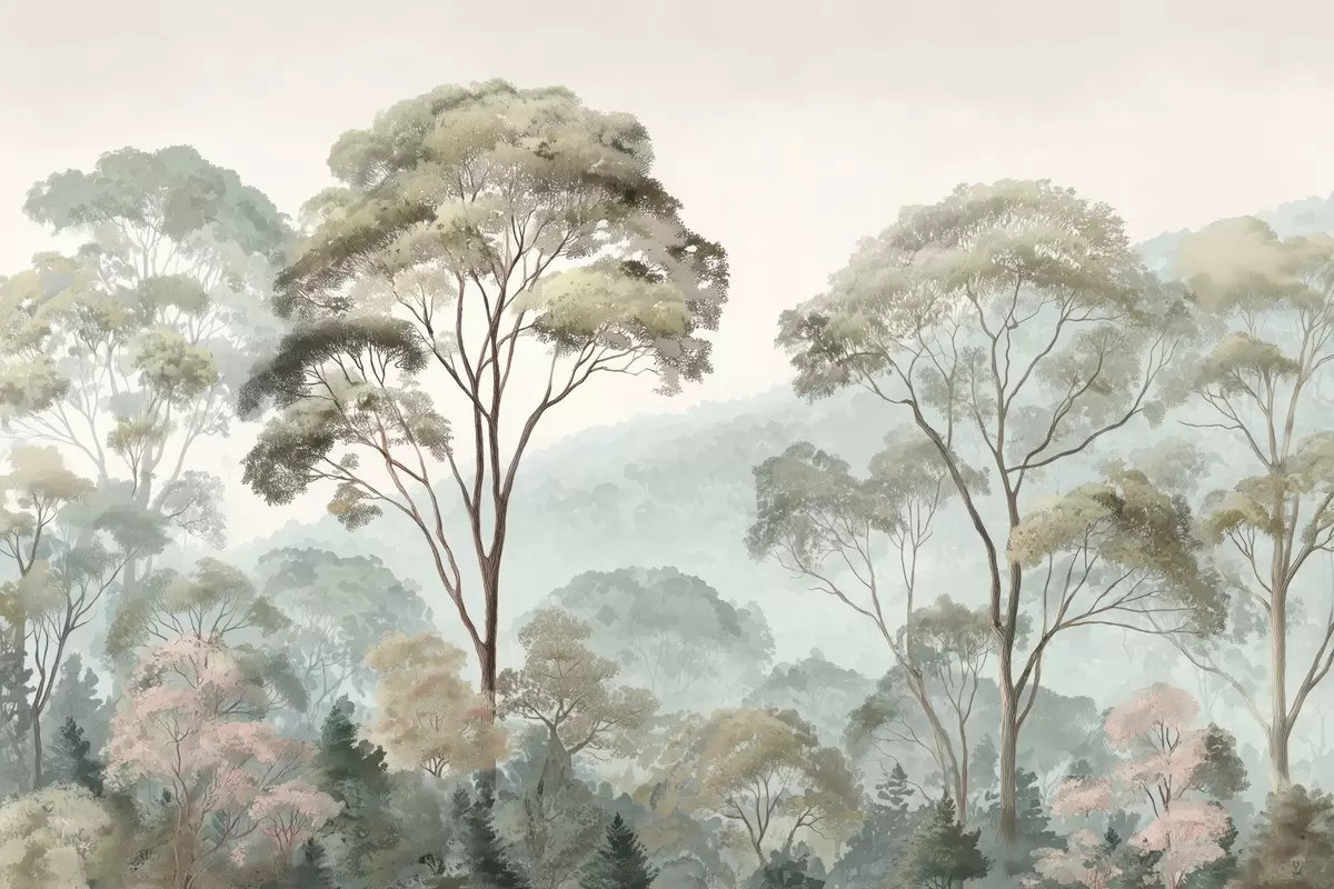 Fototapety Mlhavé ráno v lese v akvarelovém stylu Č. w09405
