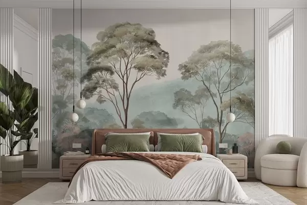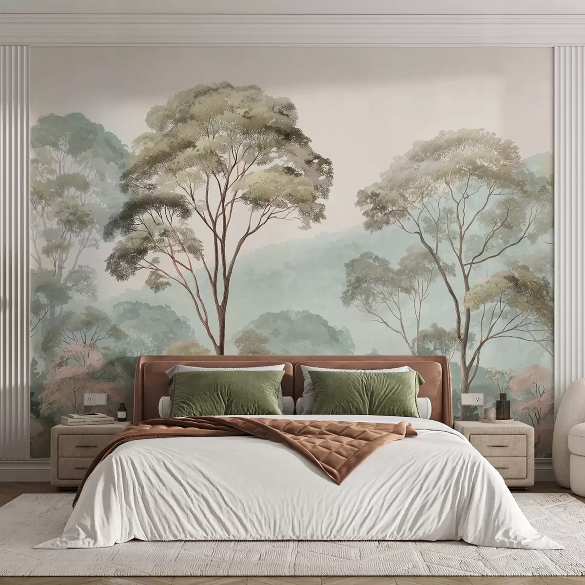 Fototapety Mlhavé ráno v lese v akvarelovém stylu Č. w09405