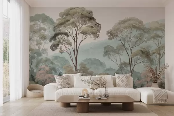 Fototapety Mlhavé ráno v lese v akvarelovém stylu Č. w09405