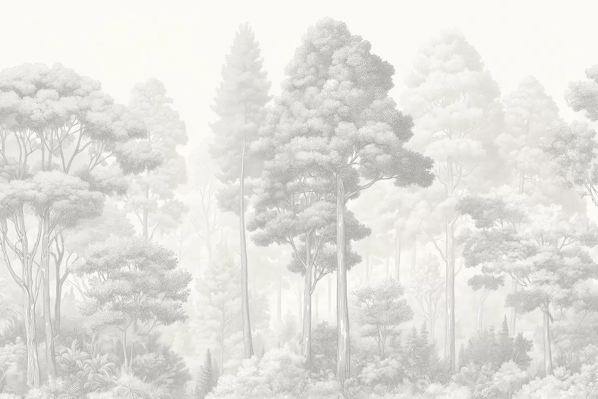 Fototapety Umělecká lesní krajina v technice černobílého grafického šrafování Č. w09411