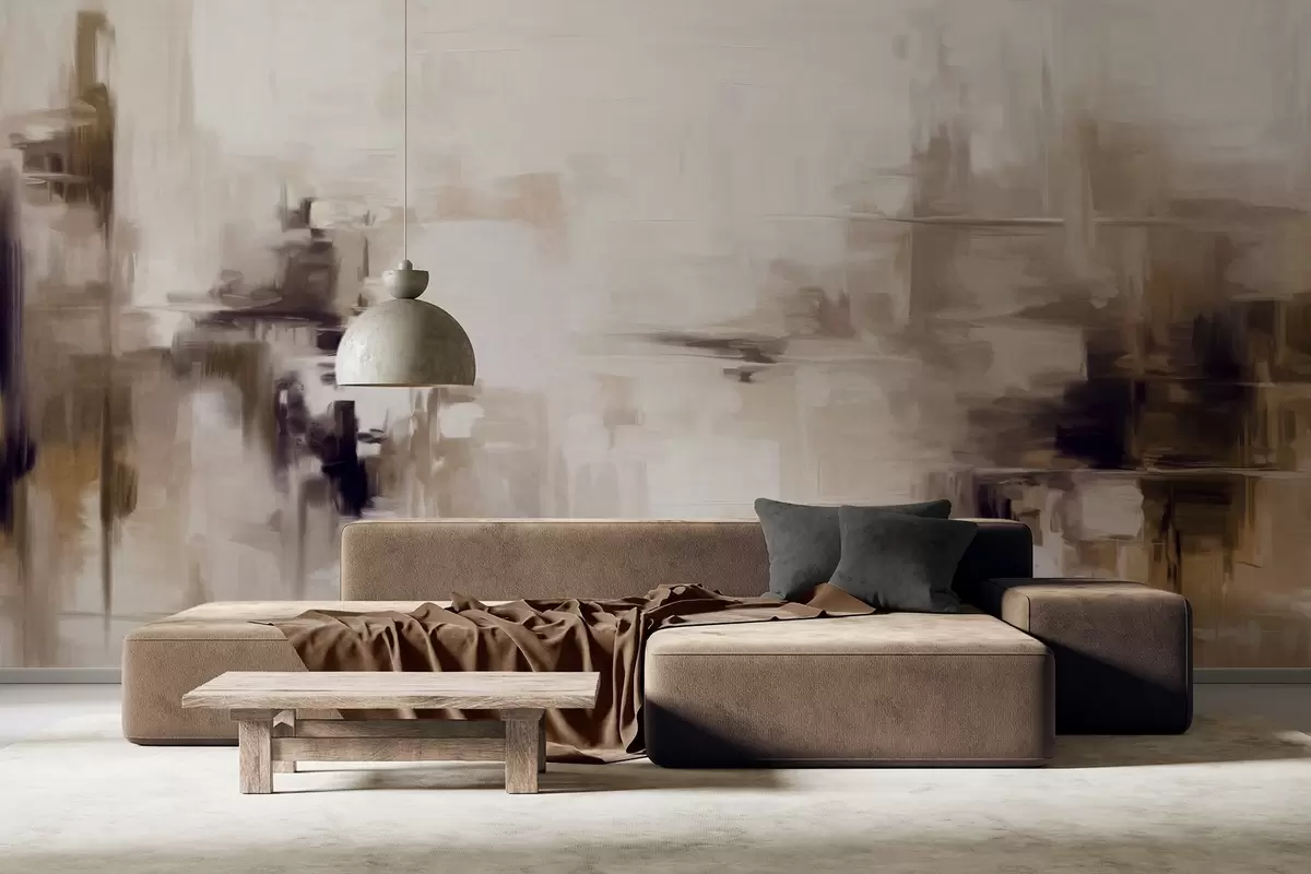 Fototapety Abstraktní texturovaná imitace krajinomalby s hnědými a bílými tahy štětcem, moderní styl Č. w09422v1