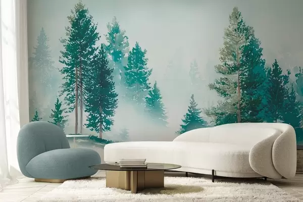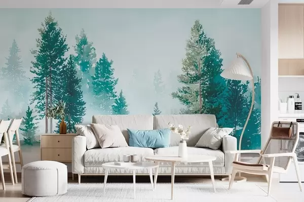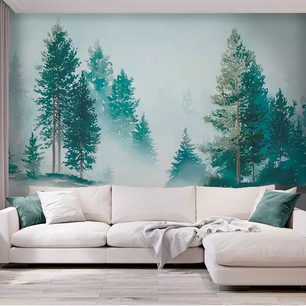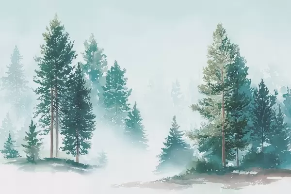 Fototapety Mlhavý borový les v akvarelovém stylu Č. w09444