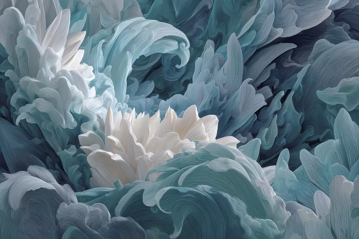 Fototapety Tanec okvětních lístků a mořských vln v modrých odstínech Č. w09454