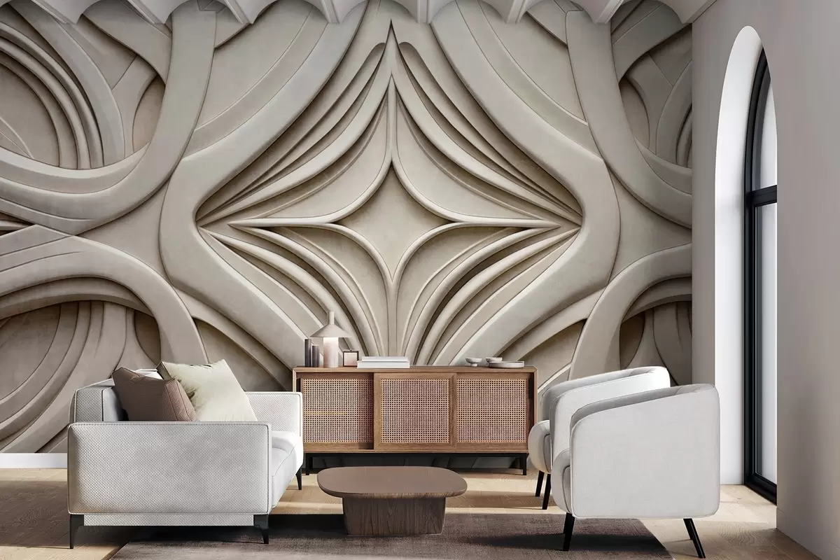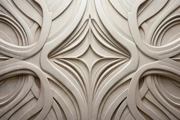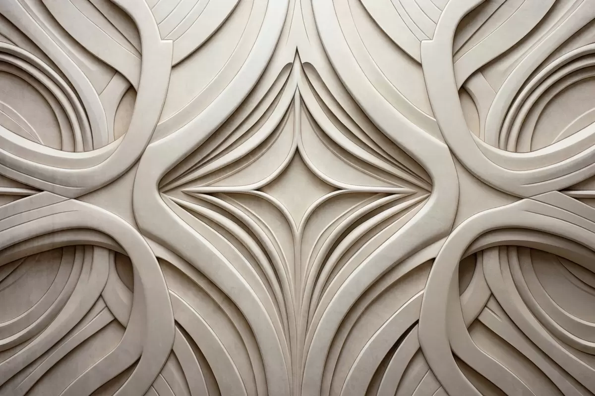 Fototapety Abstraktní symetrický geometrický potisk, světle béžová barva, styl art deco, složité detaily Č. w09473