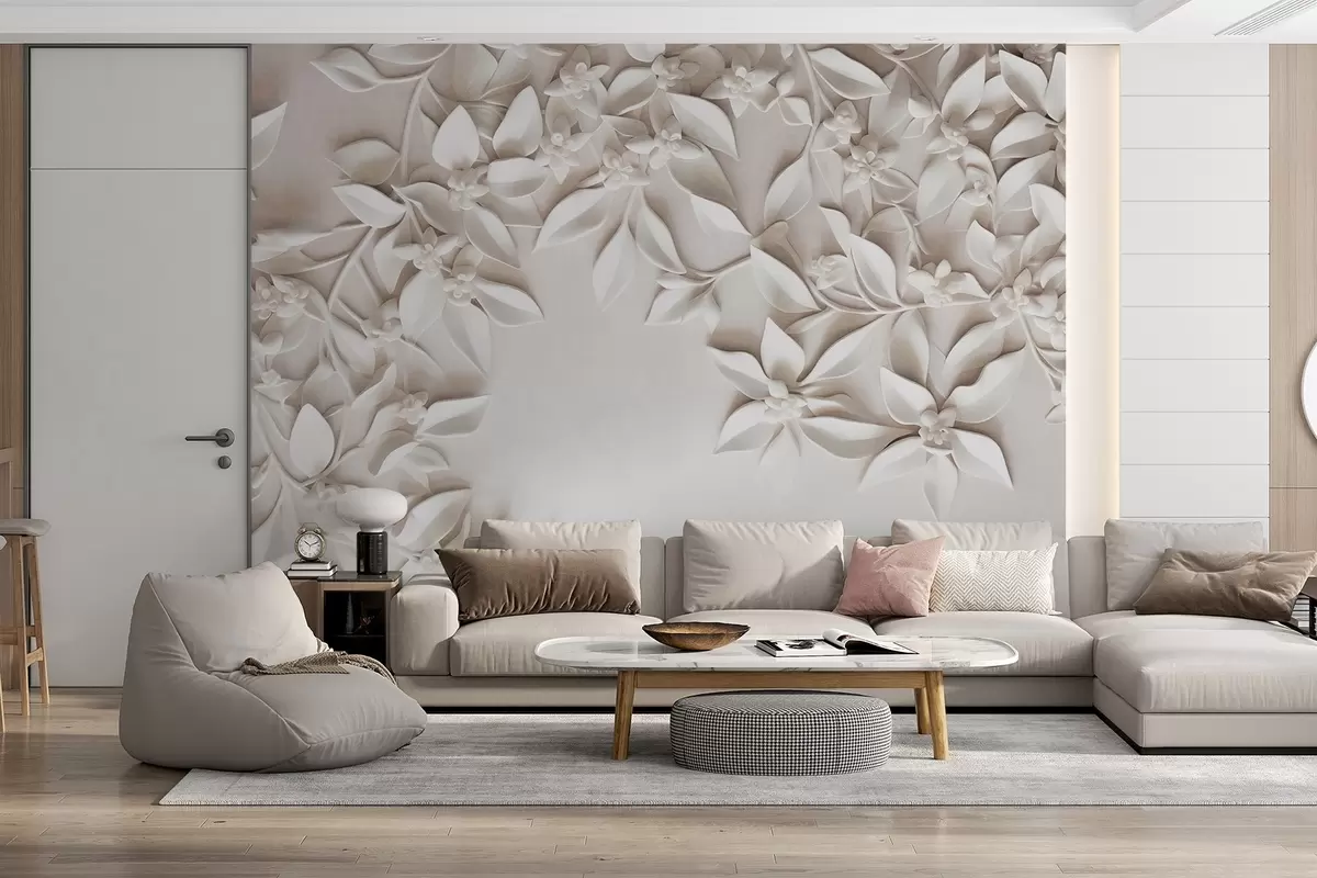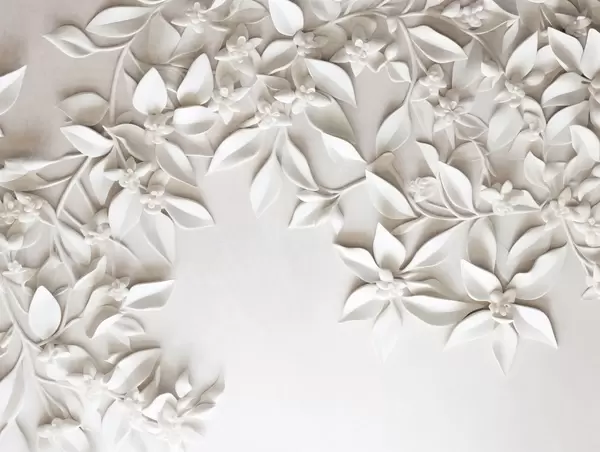 Fototapety Bílé texturované květiny a listy, květinová aranžmá, elegantní design, minimalistický styl, dekorativní umění Č. w09479