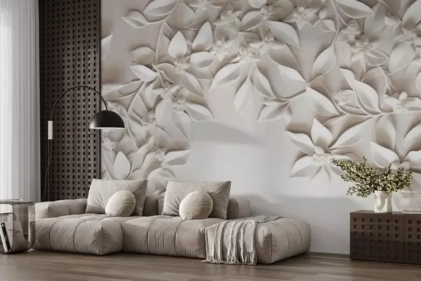 Fototapety Bílé texturované květiny a listy, květinová aranžmá, elegantní design, minimalistický styl, dekorativní umění Č. w09479