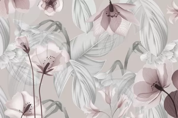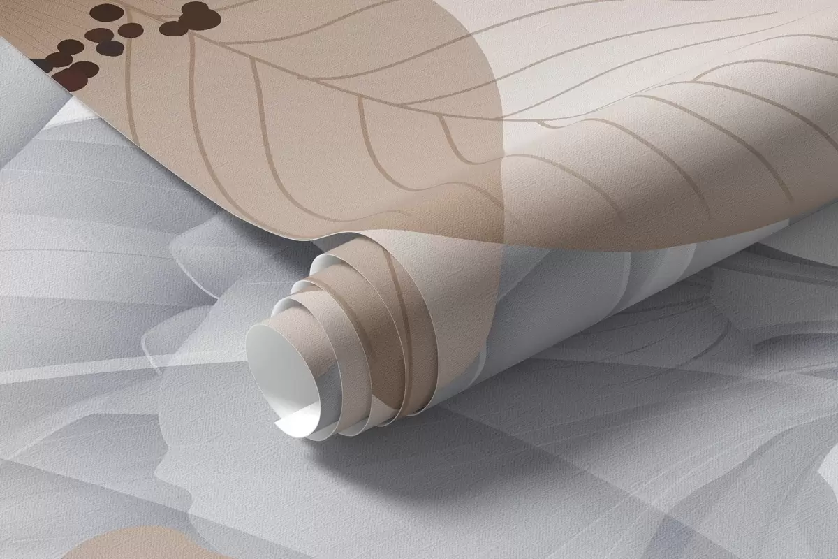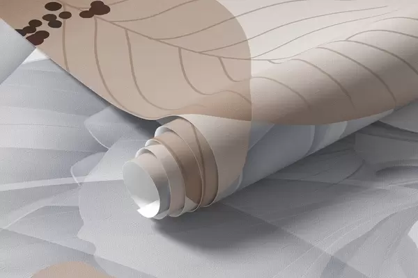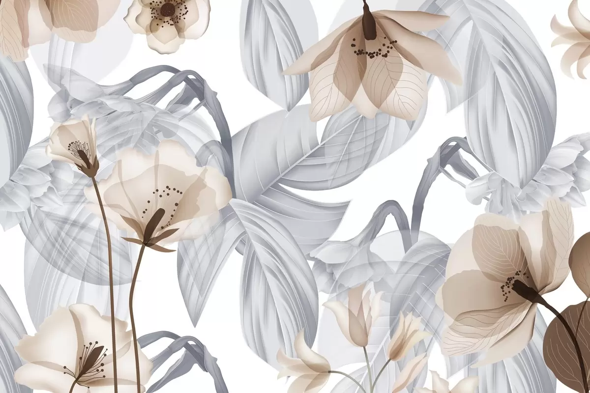Fototapety Hnědé květy a šedé listy, květinové botanické pozadí, elegantní design, jemné barvy, lehké jemné detaily Č. w09497v1