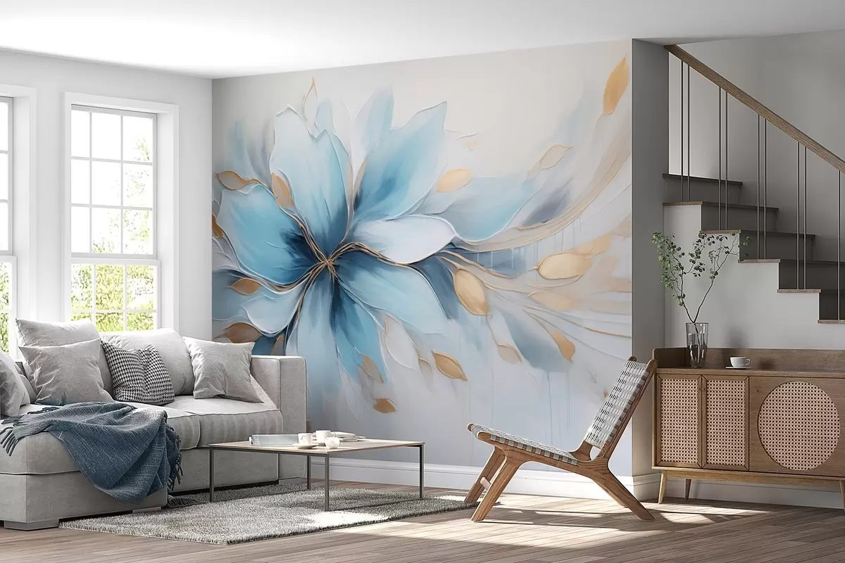Fototapety Abstraktní modrý květ klidu s listy Č. w09500