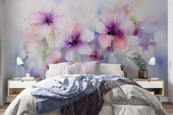 Fototapety Jarní akvarelové květiny v odstínech růžové a fialové Č. w09502