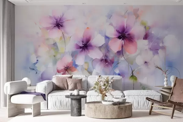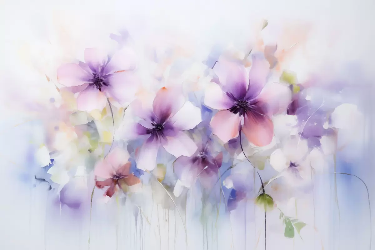 Fototapety Jarní akvarelové květiny v odstínech růžové a fialové Č. w09502