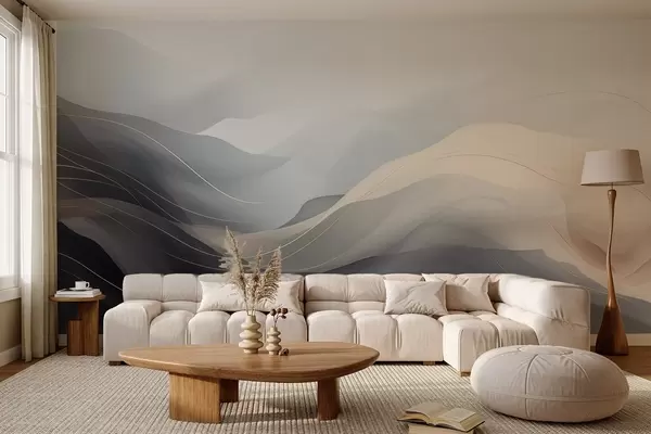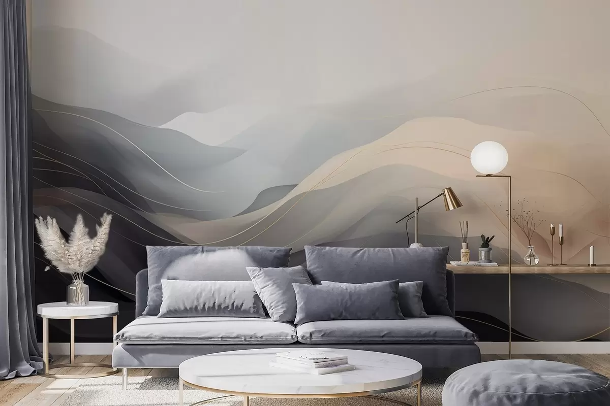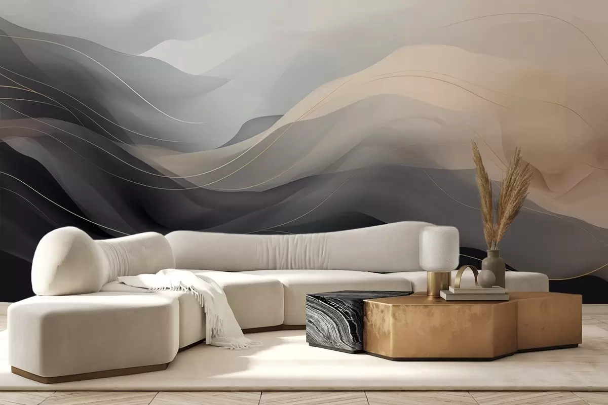 Fototapety Abstraktní mlhavé vlny v šedohnědých tónech se žlutými liniemi Č. w09504