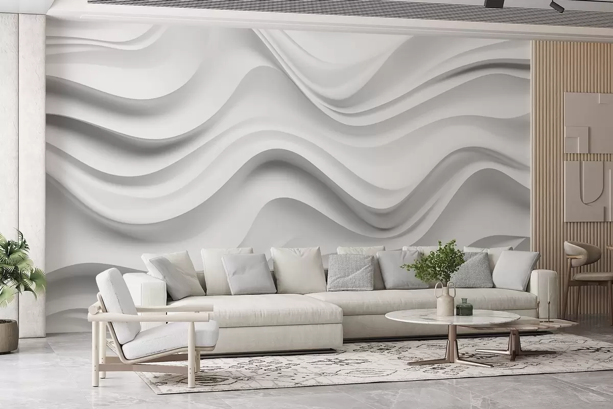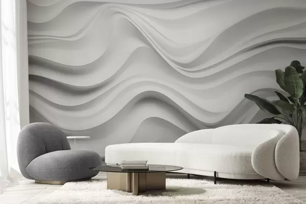 Fototapety Černobílá abstraktní 3D kompozice s hladkými vlnami Č. w09506