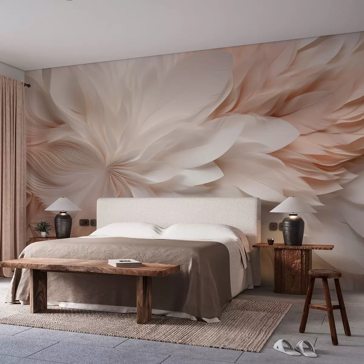 Fototapety Jemná abstraktní peříčka v pohybu v béžových a krémových tónech Č. w09509