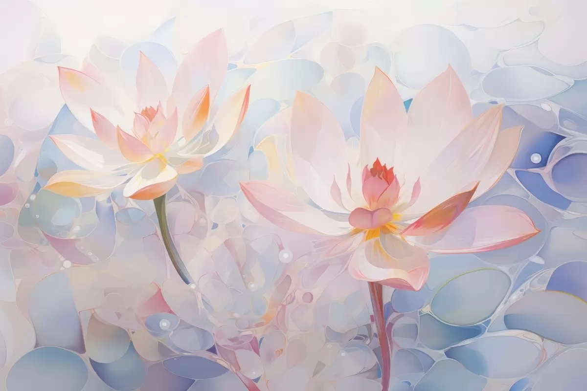 Fototapety Jemné pastelové lotosové květy v akvarelovém stylu Č. w09512