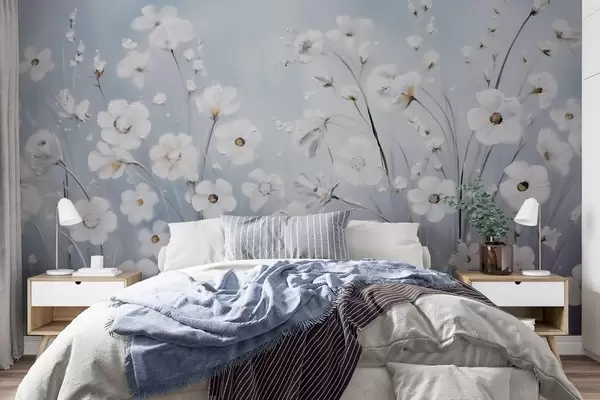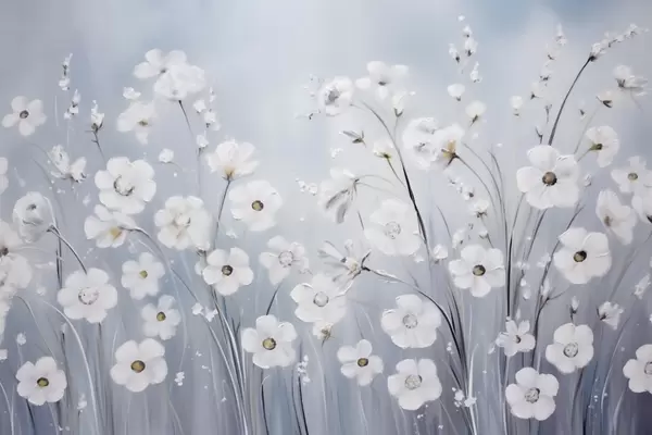 Fototapety Bílé květy na pozadí modré oblohy v olejomalířském stylu Č. w09516
