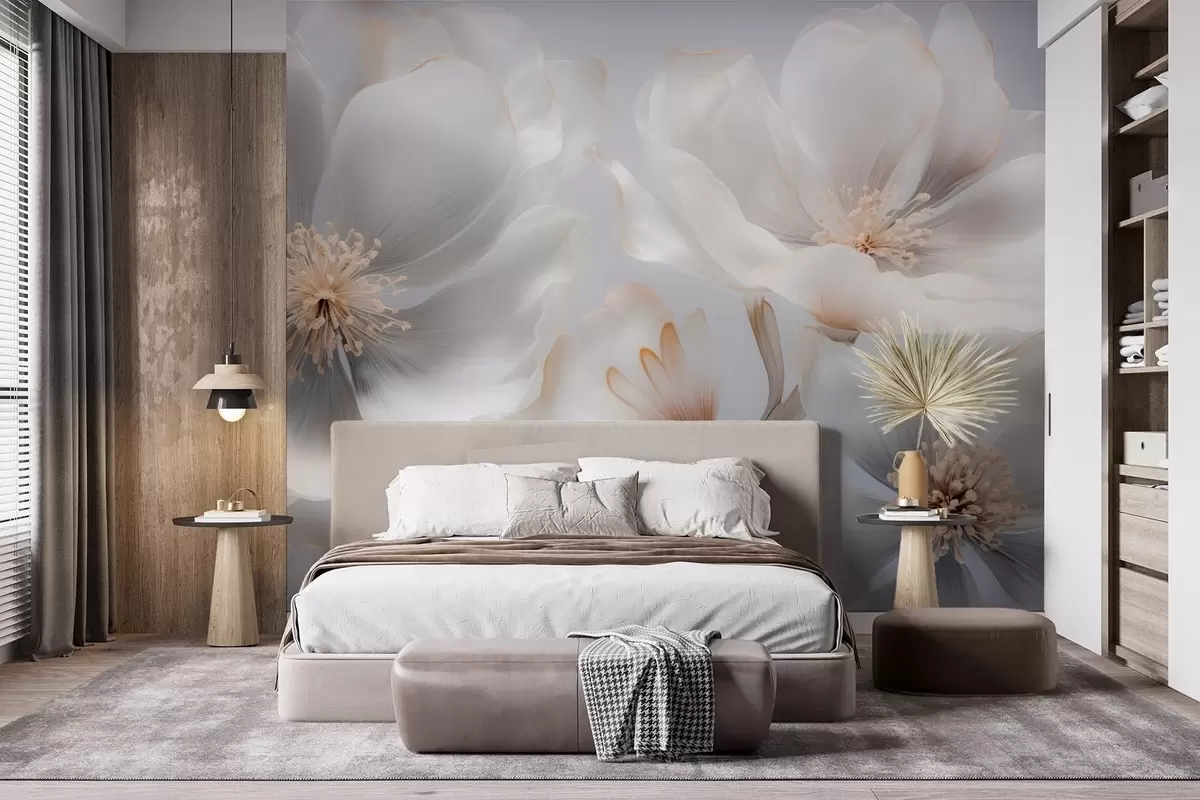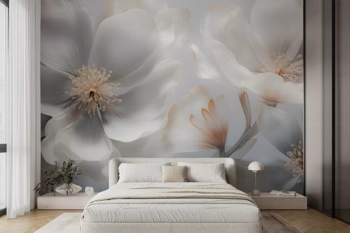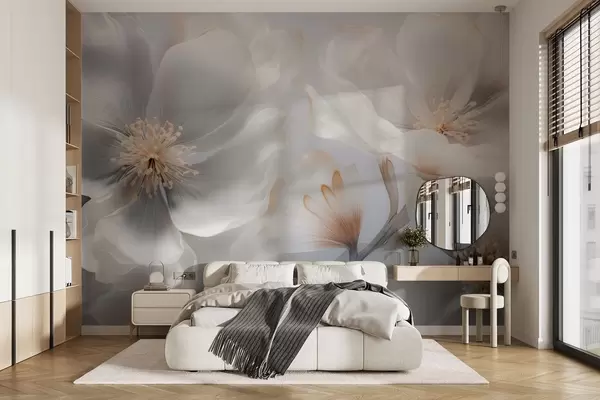 Fototapety Perleťové květy v béžovo-šedých a mléčně krémových odstínech Č. w09527