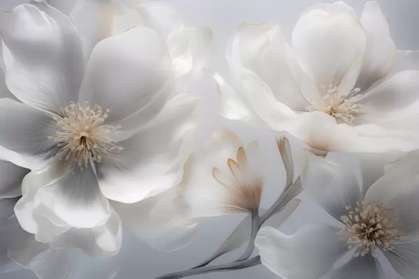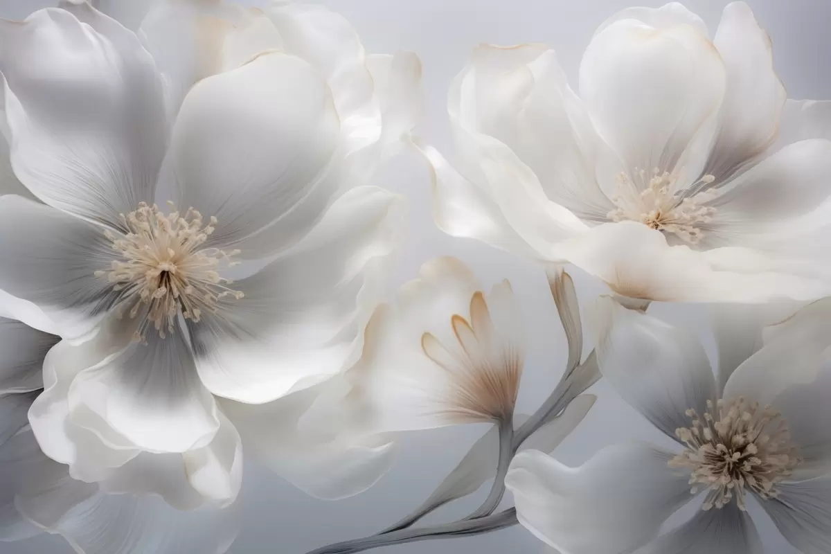 Fototapety Perleťové květy v béžovo-šedých a mléčně krémových odstínech Č. w09527