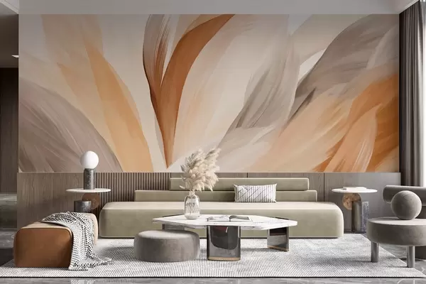Fototapet Abstraktní texturované peří v hnědé, bílé a šedé barvě a různých odstínech, překrývající se na bílém pozadí w09531