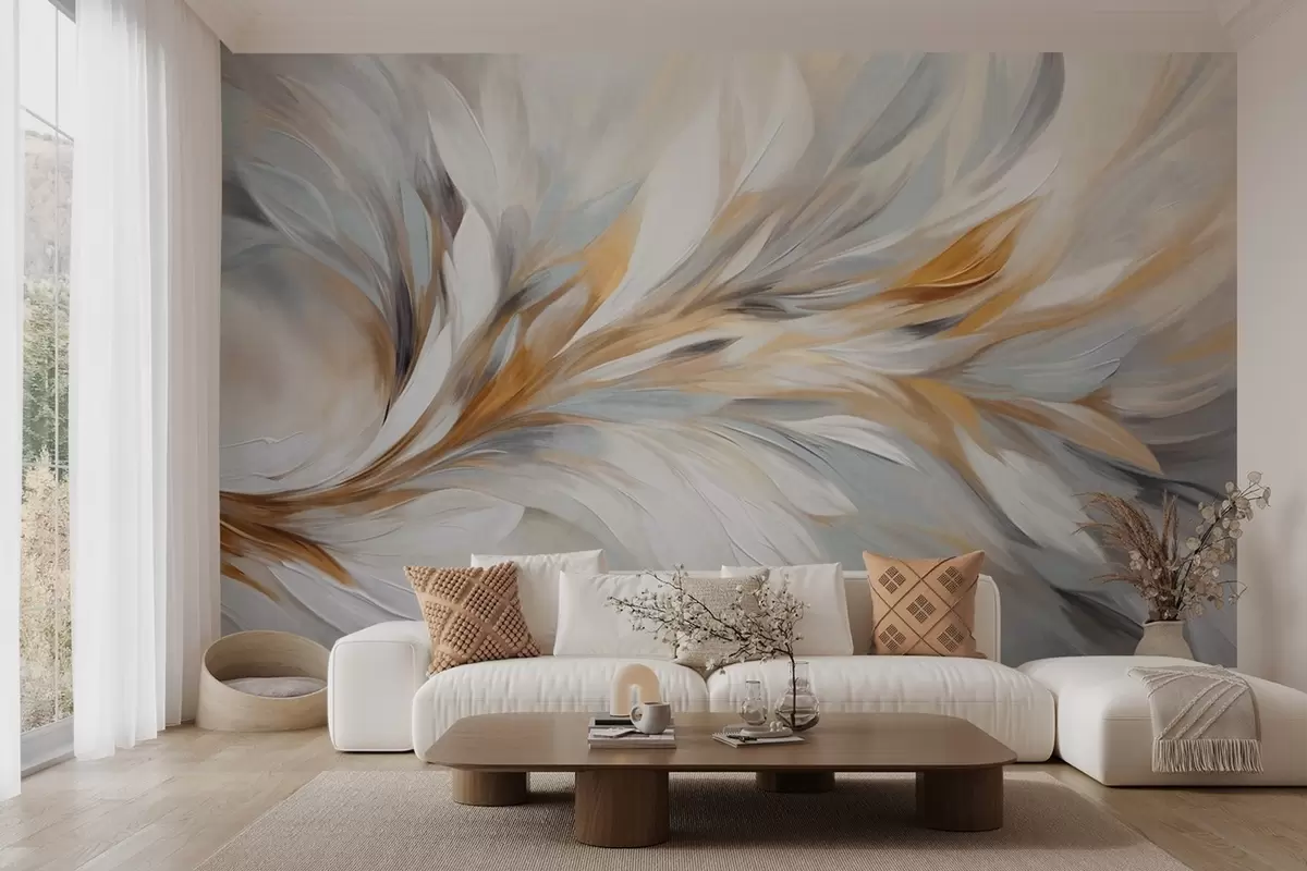 Fototapety Abstraktní malířský styl s bílými, žlutými a šedými texturovanými tahy štětcem na měkkém, světlém pozadí Č. w09552