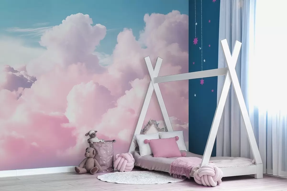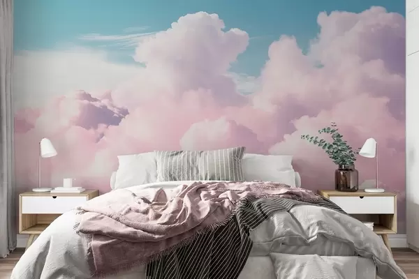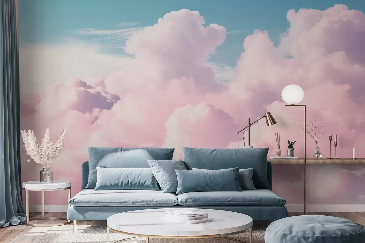 Fototapety Měkké vzdušné růžové mraky na modré obloze Č. w09569