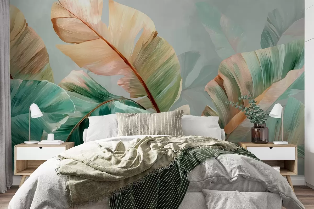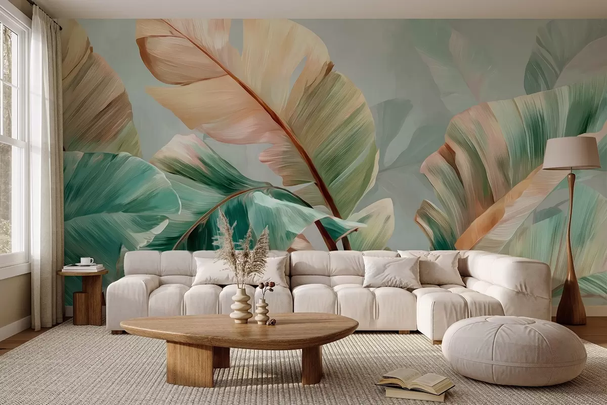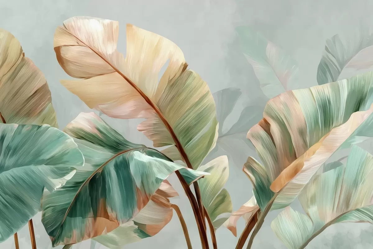 Fototapety Jemné tropické banánové listy v pastelových žlutozelených tónech Č. w09581