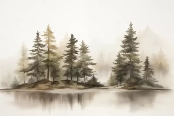Fototapety Texturovaný mlhavý les s vysokými borovicemi, imitace malby Č. w09610
