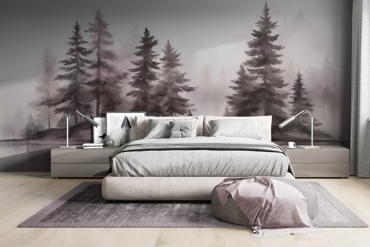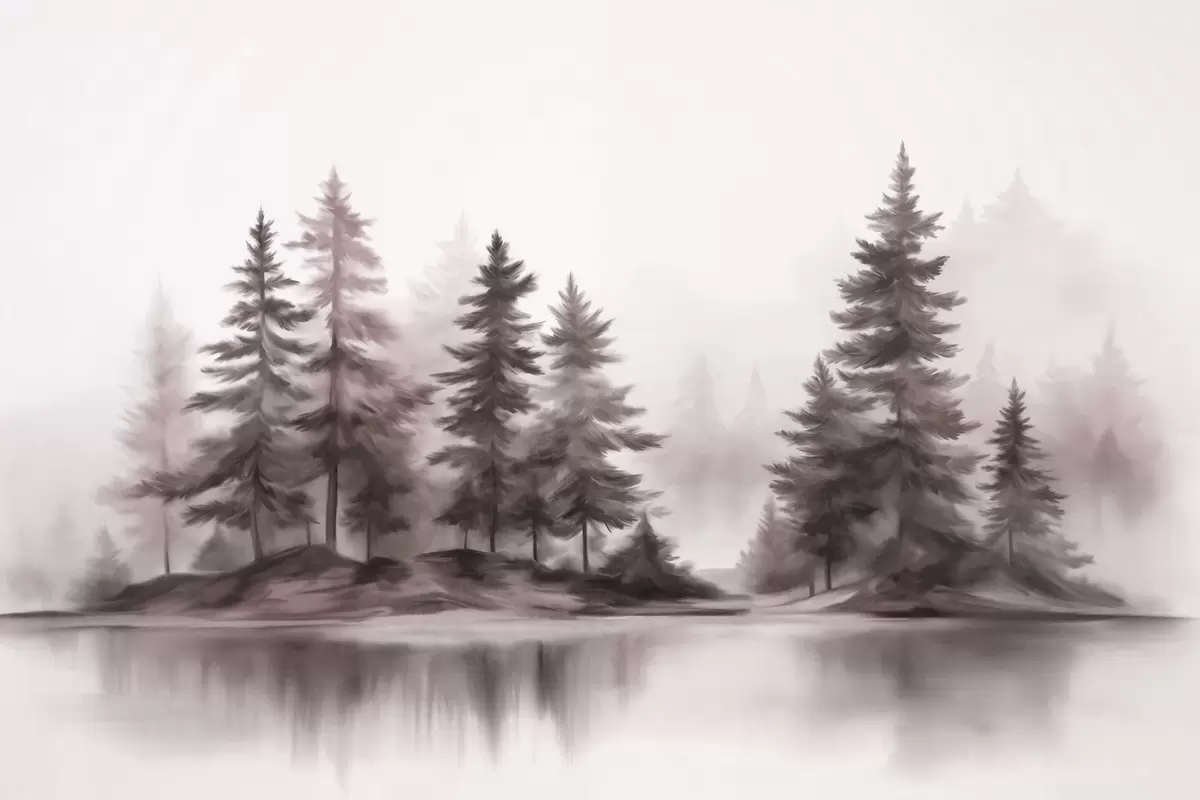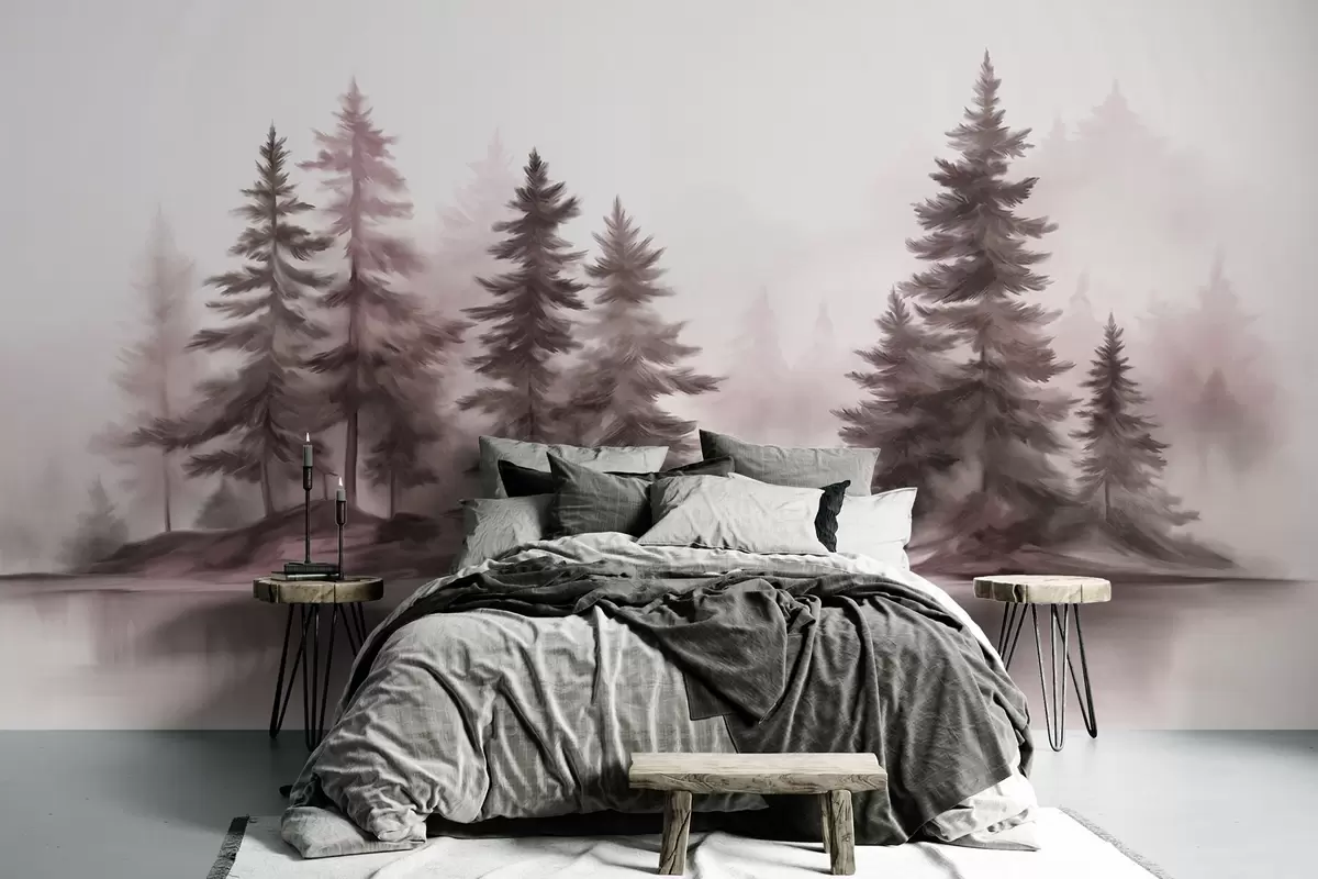 Fototapety Texturovaný mlhavý les s vysokými borovicemi, imitace malby Č. w09610v1
