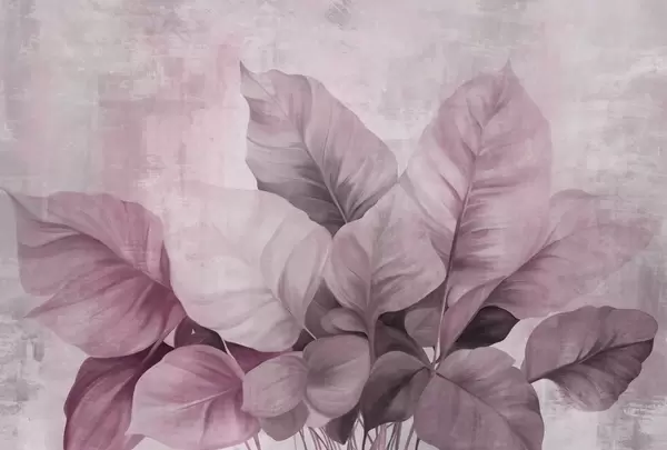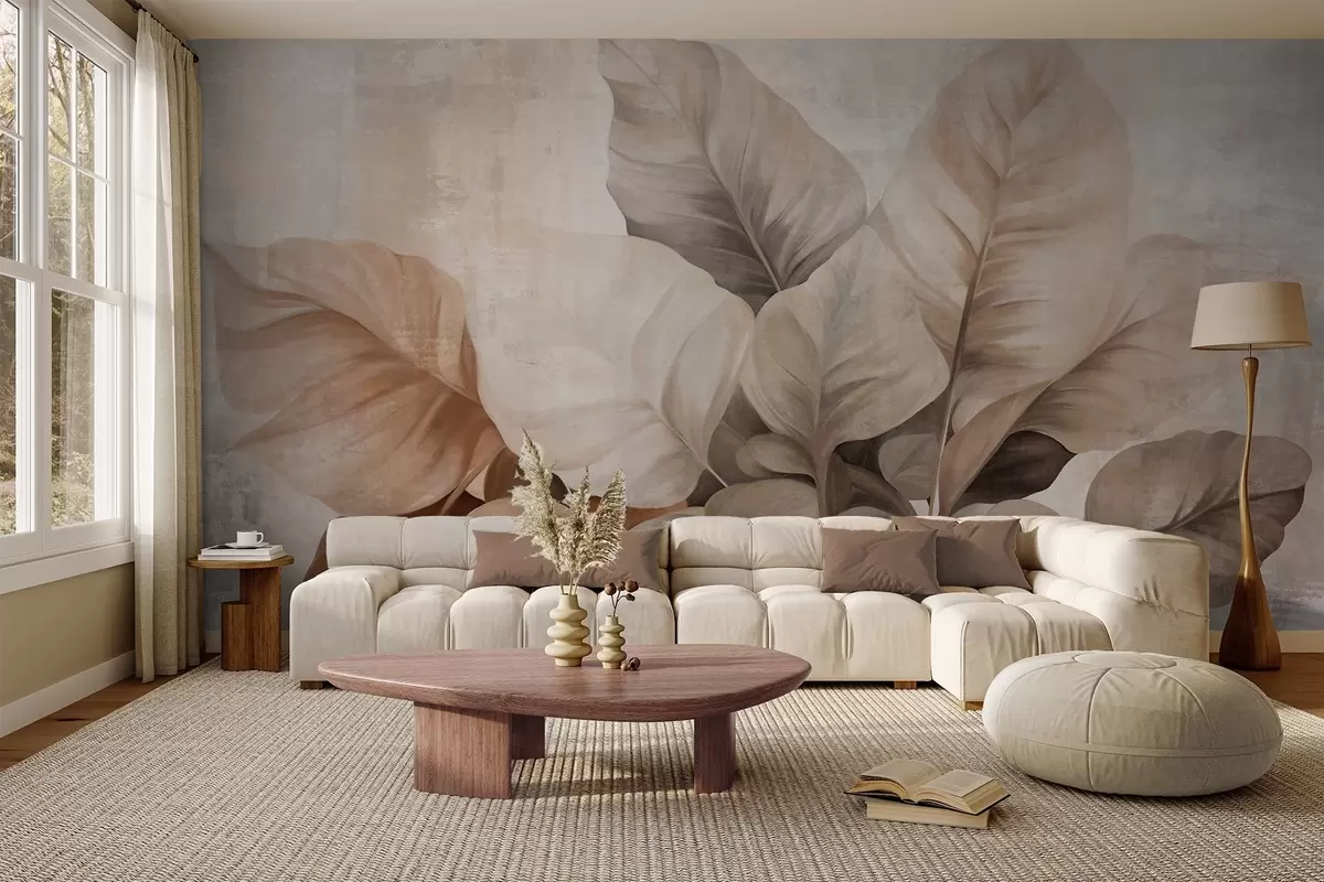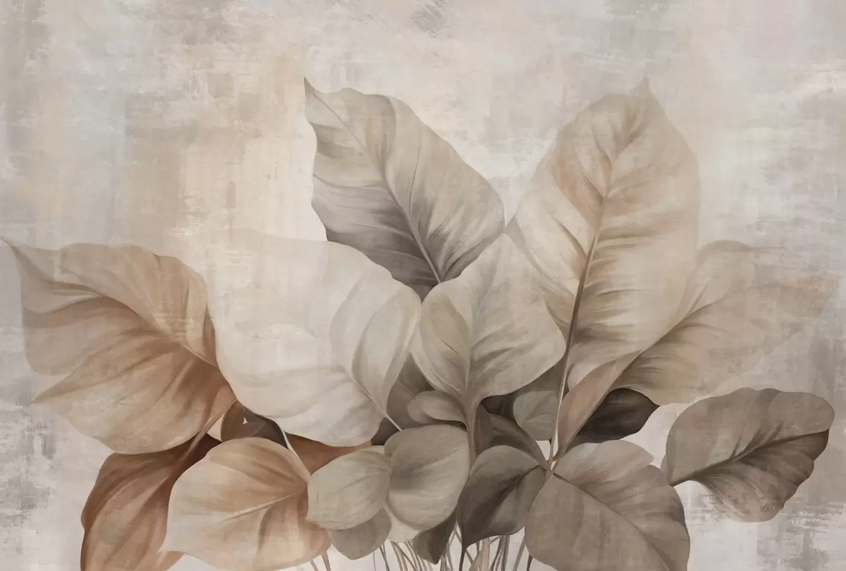 Fototapety Texturovaná malba imitující velké, světle hnědé listy na neutrálním pozadí s jemnými tahy štětcem. Č. w09614