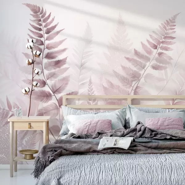 Fototapety Texturované sušené listy kapradiny v různých odstínech růžové barvy, s jemným, světlým pozadím ve stylu akvarelu. Č. w09615v2