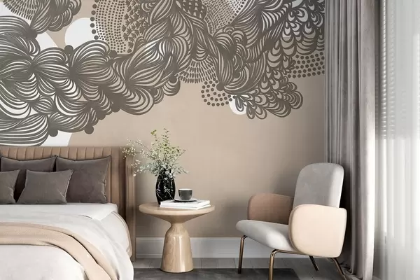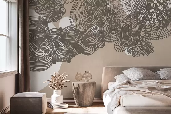 Fototapety Abstraktní texturovaný vzor na béžovém pozadí se složitými liniemi a tečkovanou texturou. Č. w09621
