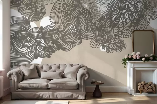 Fototapety Abstraktní texturovaný vzor na béžovém pozadí se složitými liniemi a tečkovanou texturou. Č. w09621