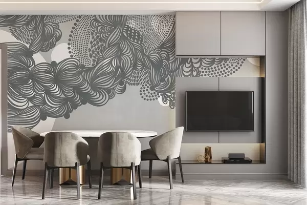 Fototapety Abstraktní texturovaný design na šedém pozadí s komplikovanými liniemi a tečkovanou texturou. Č. w09621v1