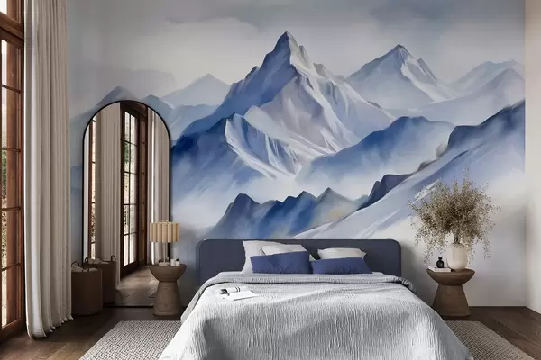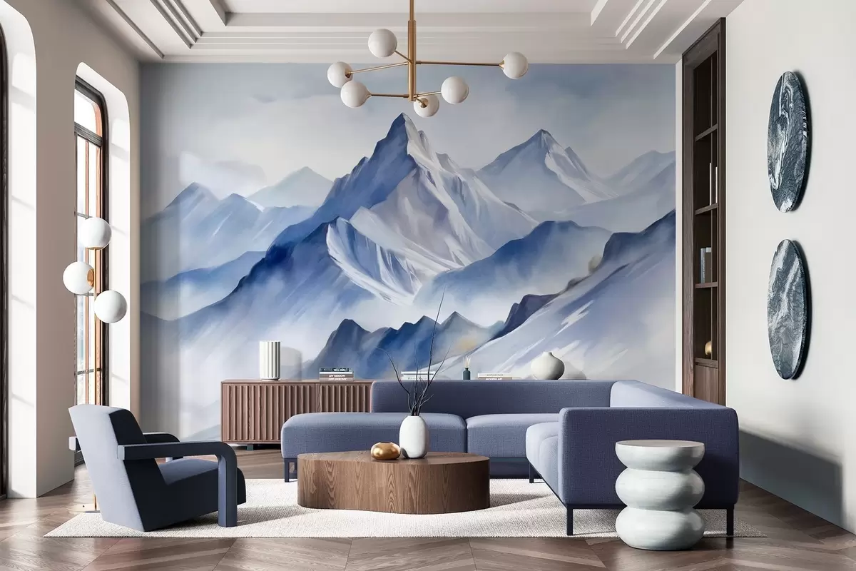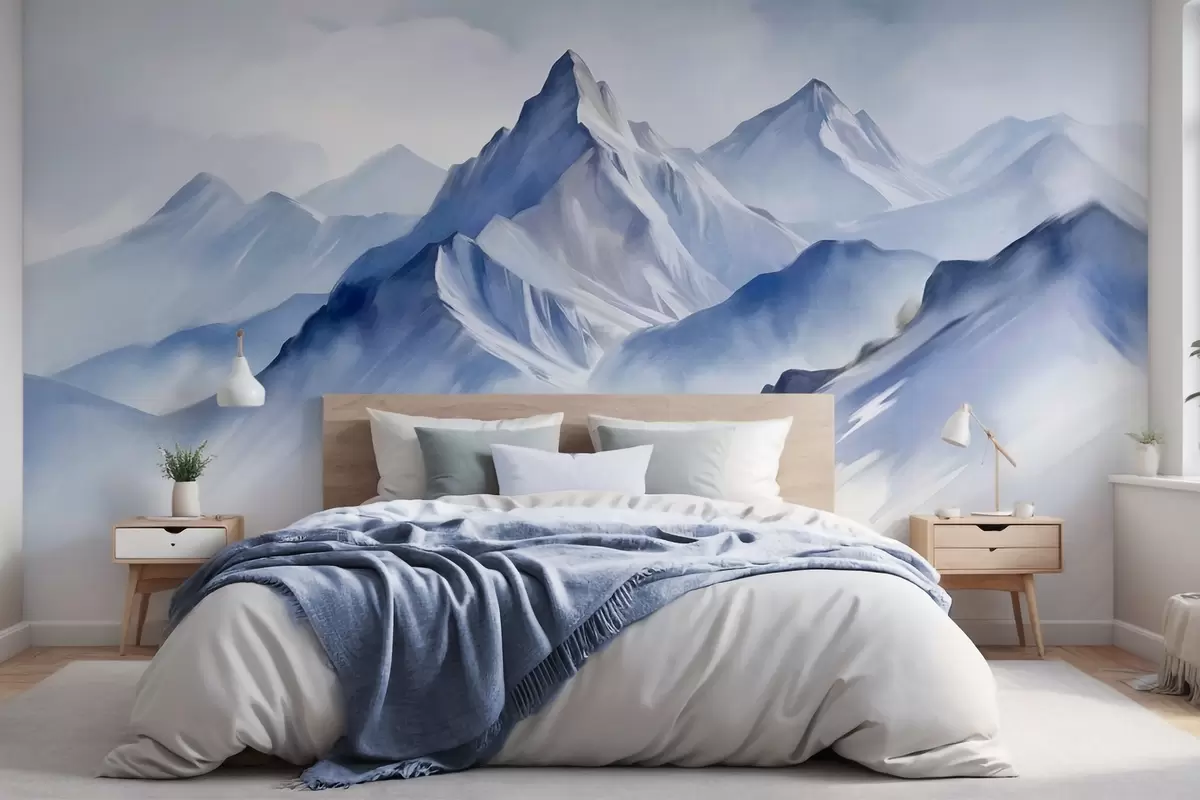 Fototapety Texturované zasněžené hory s jemným akvarelovým efektem a paletou modré a bílé barvy Č. w09630