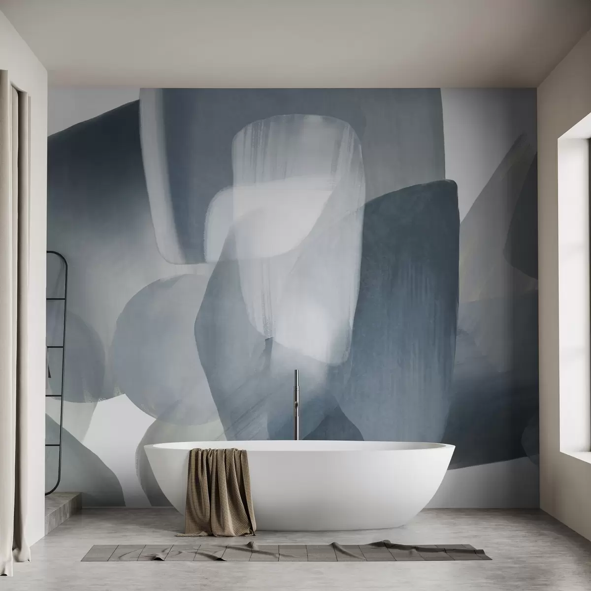 Fototapety Abstraktní tvarované tvary v tlumených modrých a šedých barvách, s měkkými okraji a překrývajícími se vrstvami Č. w09642v1