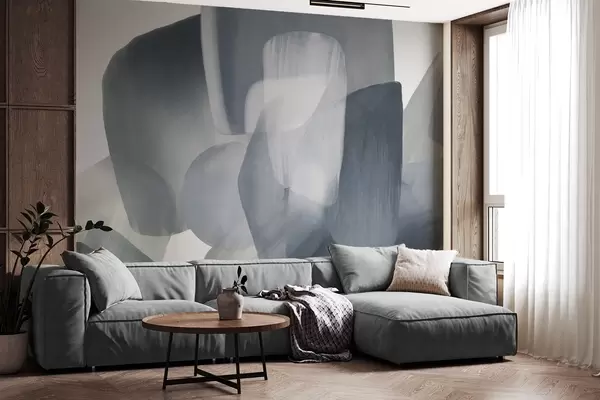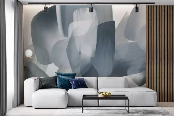 Fototapety Abstraktní tvarované tvary v tlumených modrých a šedých barvách, s měkkými okraji a překrývajícími se vrstvami Č. w09642v1
