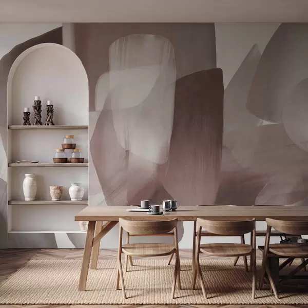 Fototapety Abstraktní tvary s texturou v tlumených barvách vínové a šedé, s měkkými okraji a překrývajícími se vrstvami. Č. w09642v2