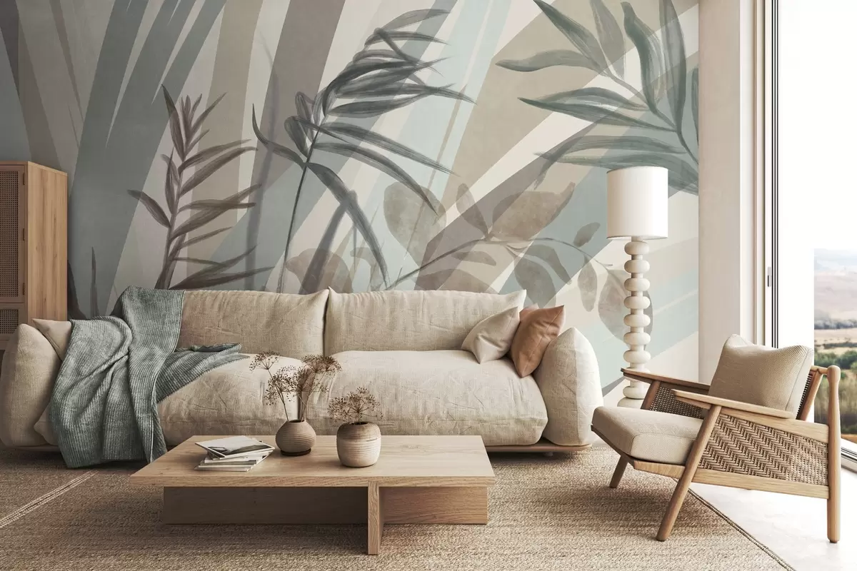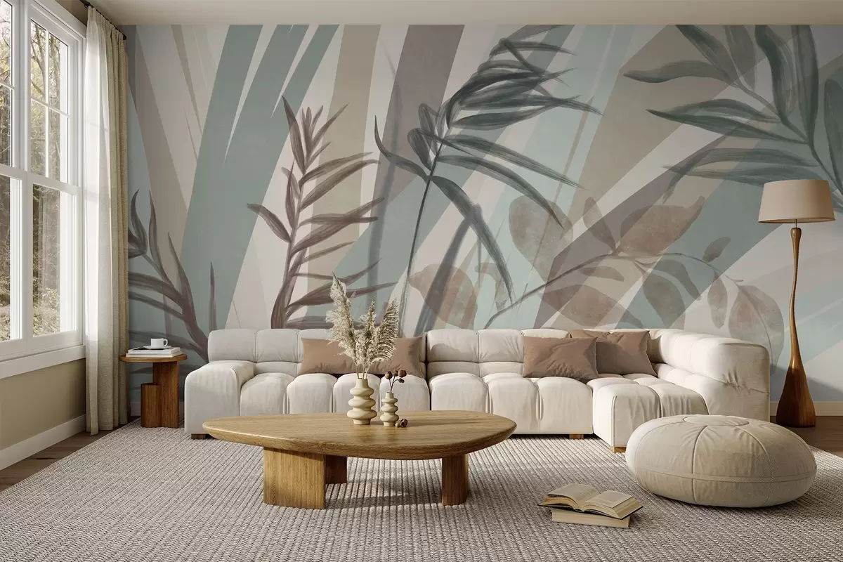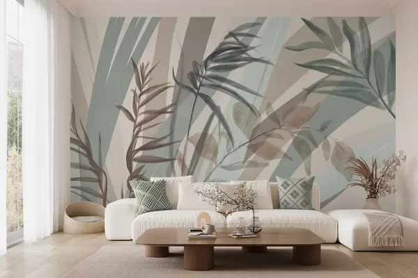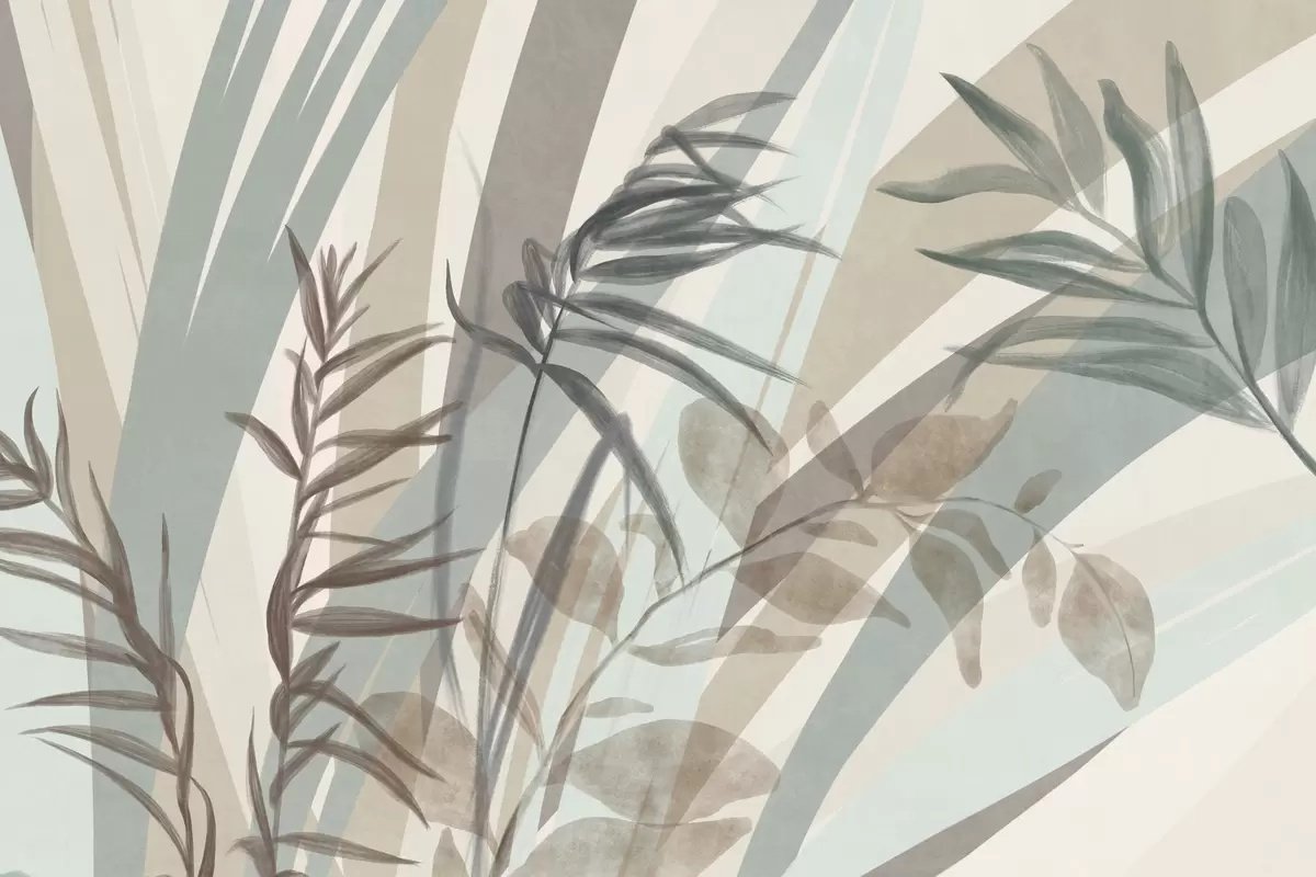 Fototapety Vysoká texturovaná tráva a listy v tlumených zemitých tónech s abstraktními liniemi v pozadí vytvářejí organický potisk. Č. w09643
