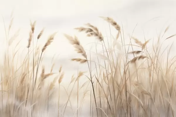Fototapety Vysoká, strukturovaná suchá tráva s klasy pšenice na poli na pozadí jemné, světlé barvy Č. w09648