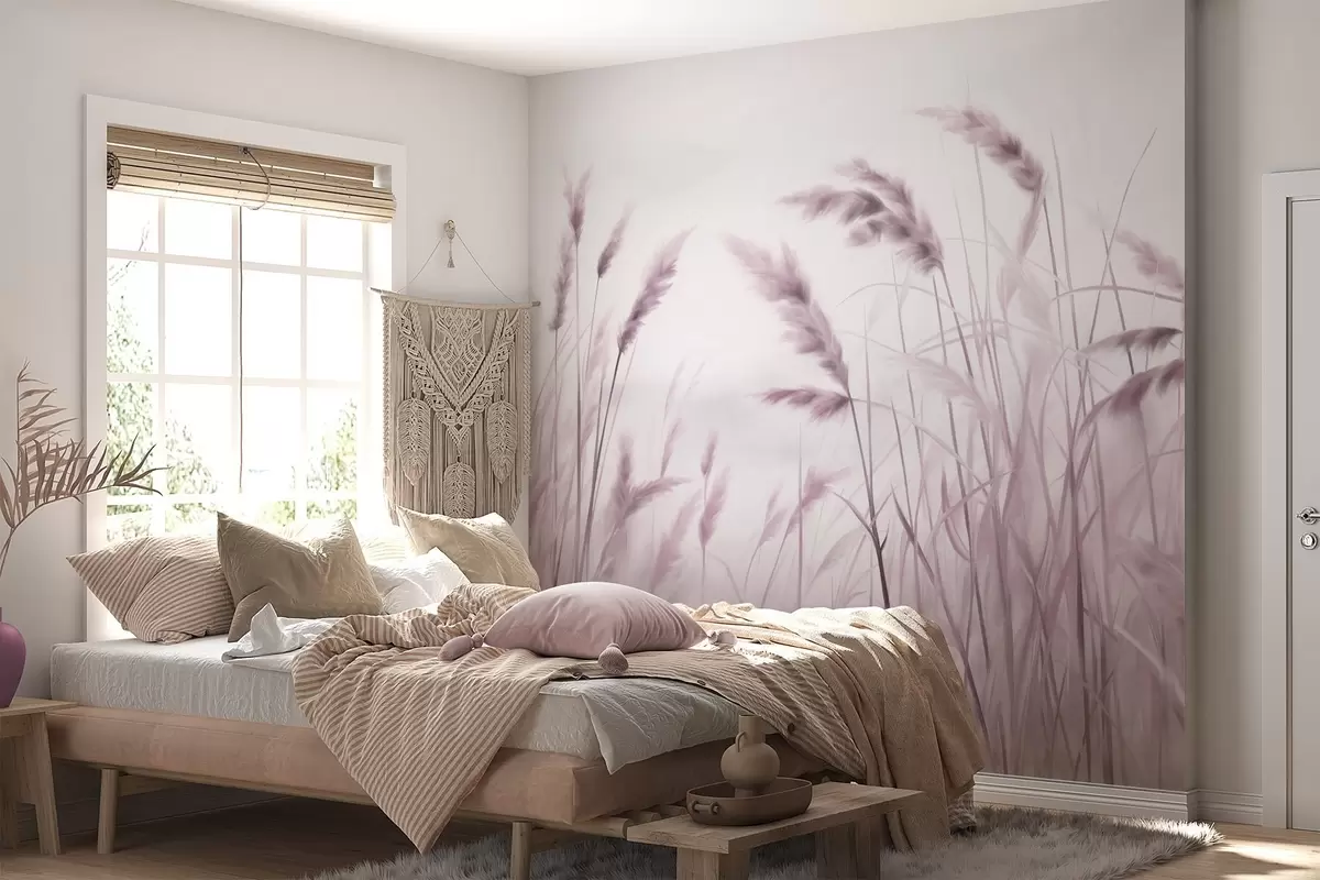 Fototapety Vysoká, strukturovaná suchá tráva s klasy pšenice na poli na pozadí jemné, světlé barvy Č. w09648v2