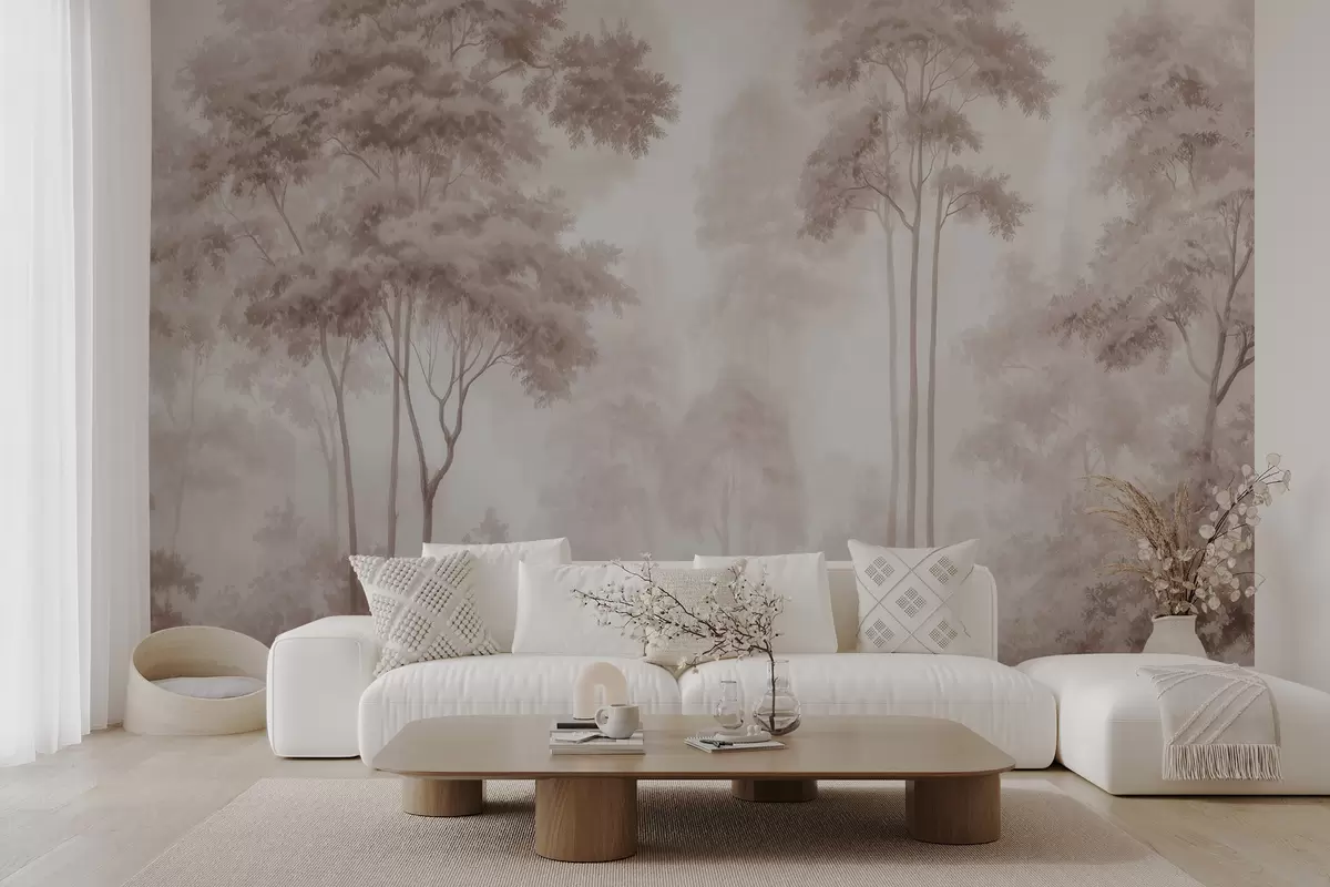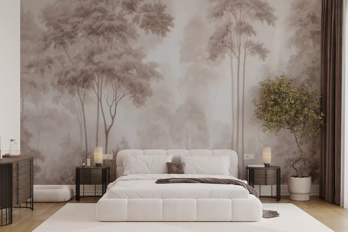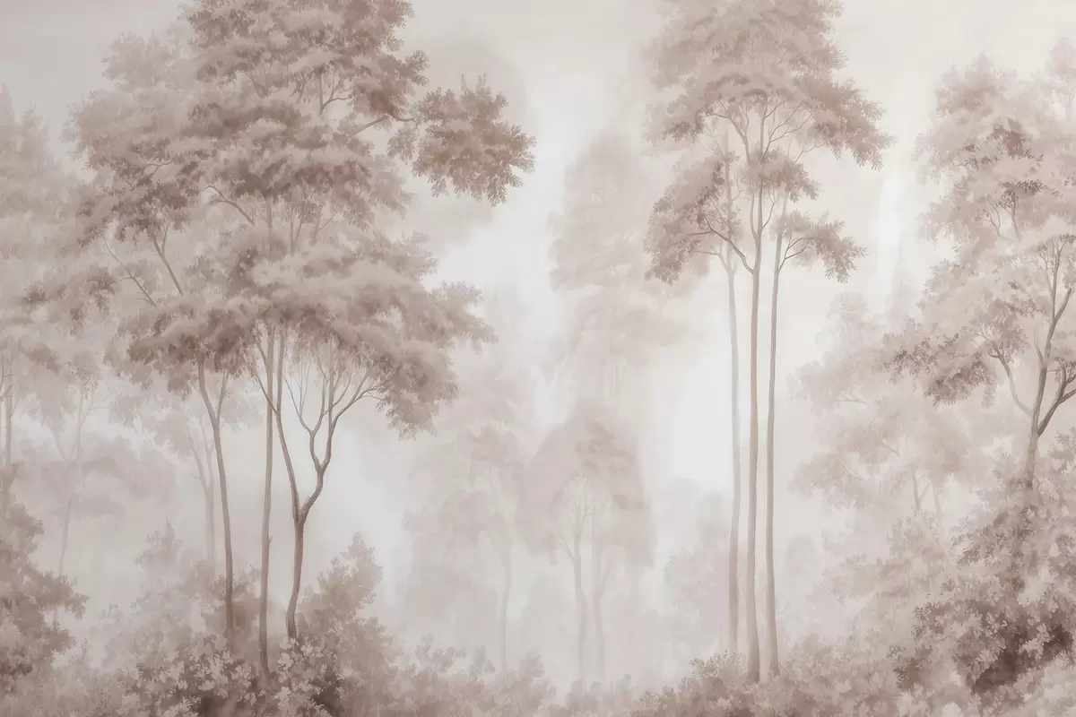 Fototapety Abstraktní lesní krajina v kouřových béžových tónech s pocitem hloubky Č. w09657
