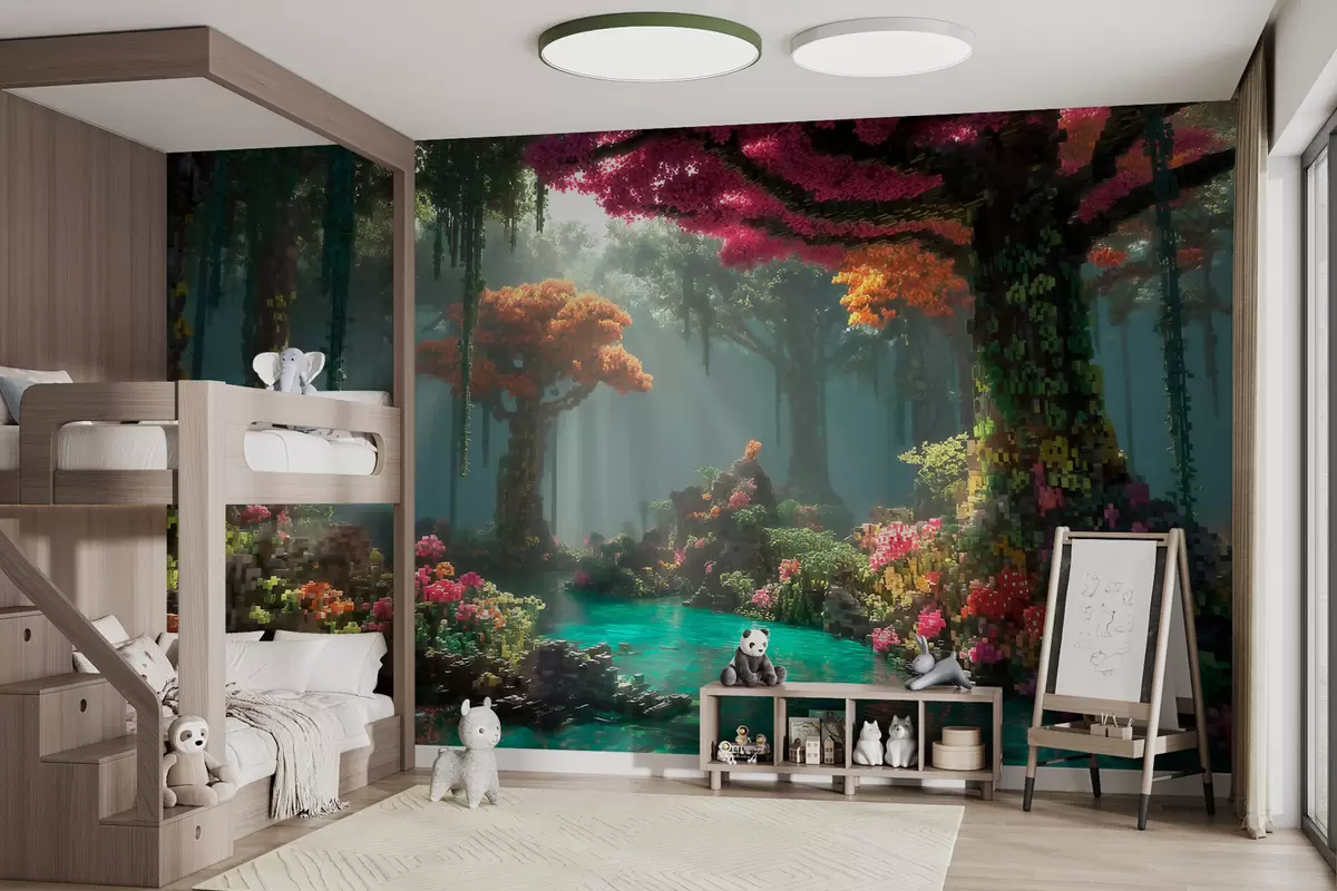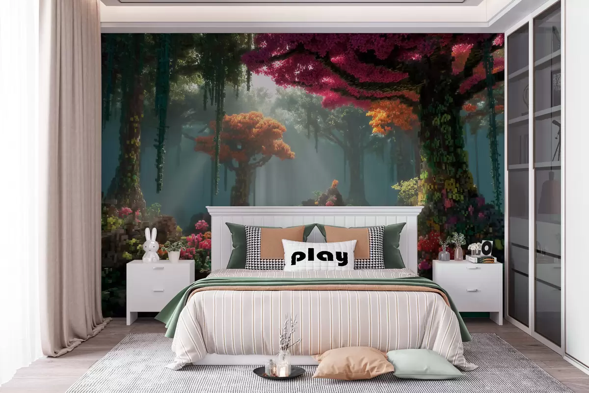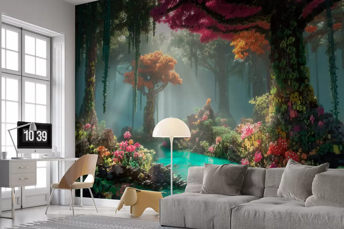 Fototapety Pixelová kouzelná lesní mýtina inspirovaná videohrami Č. w09683