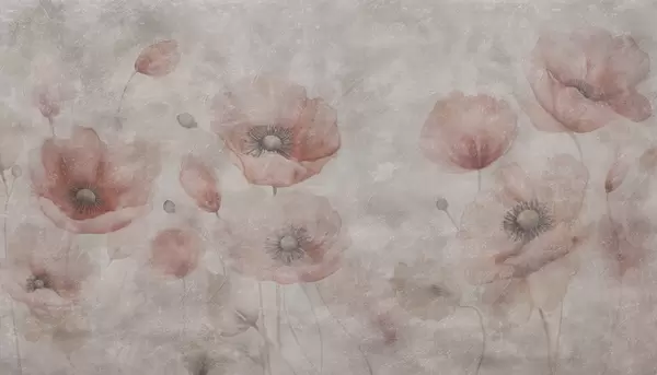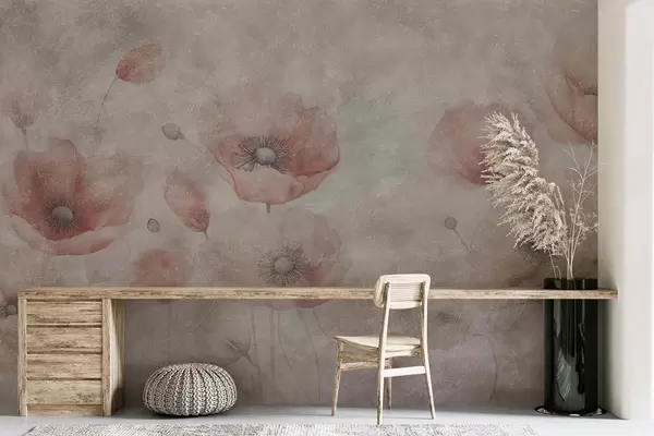 Fototapety Velké květy máku na zdi s antickým efektem Č. w09686