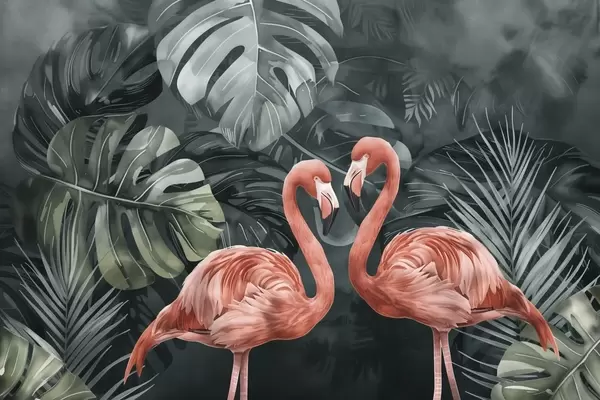 Fototapety Pár plameňáků v tropických rostlinách Č. w09687