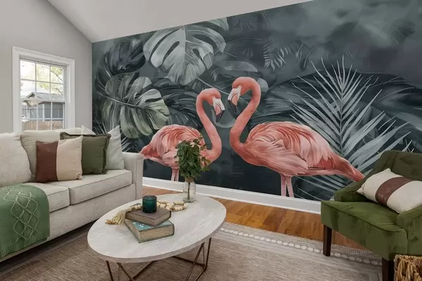 Fototapety Pár plameňáků v tropických rostlinách Č. w09687