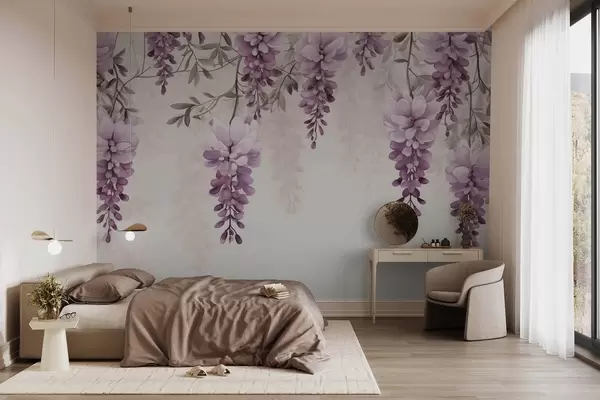Fototapety Jemné, velké levandulové větve visící na zdi, imitace akvarelu Č. w09690