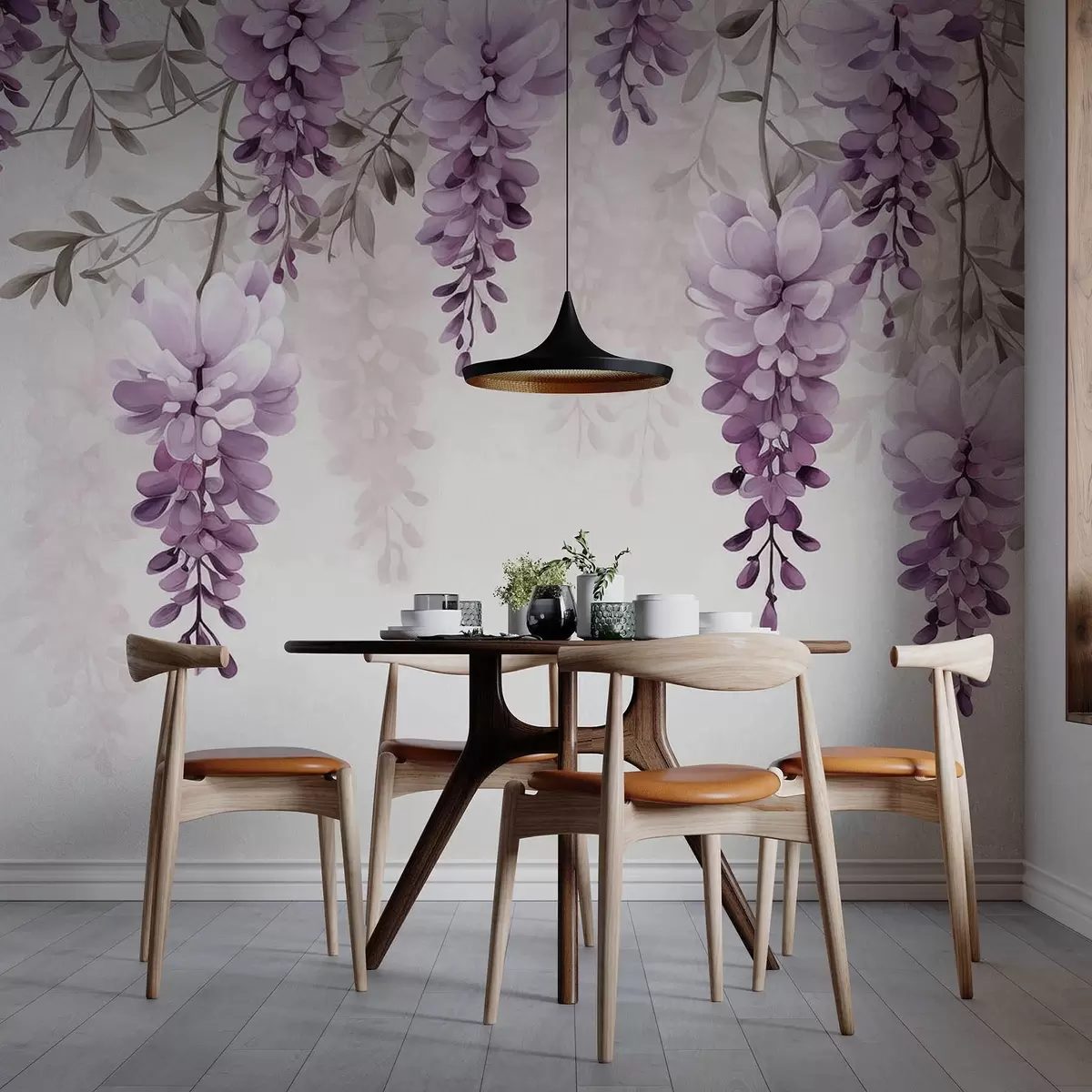 Fototapety Jemné, velké levandulové větve visící na zdi, imitace akvarelu Č. w09690