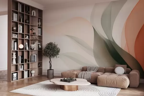 Fototapety Abstraktní pastelové vlny v oranžových a zelených tónech Č. w09718