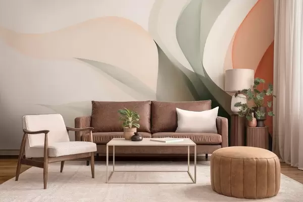 Fototapety Abstraktní pastelové vlny v oranžových a zelených tónech Č. w09718