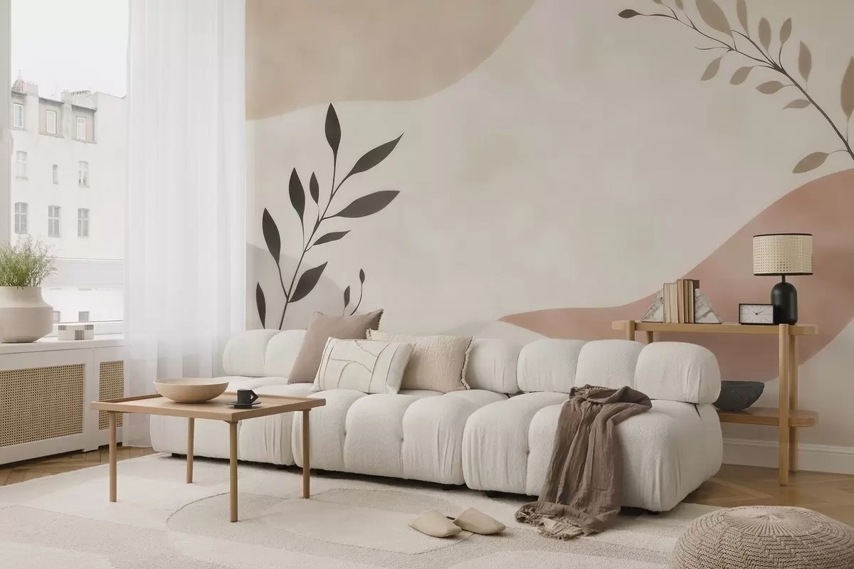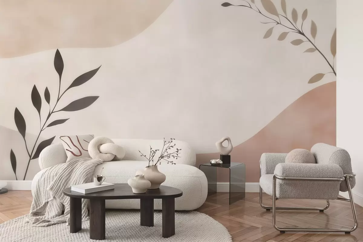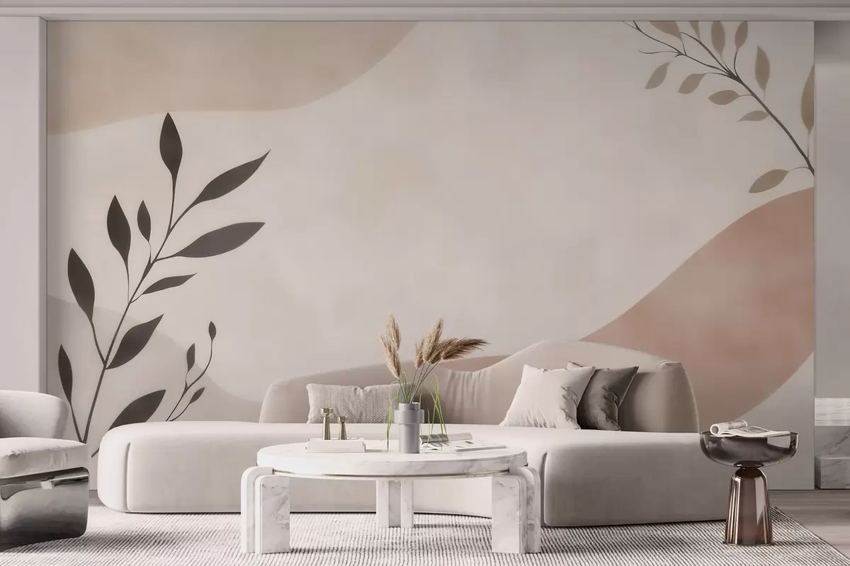 Fototapety Abstraktní béžovo-broskvové vlny s větvemi Č. w09722